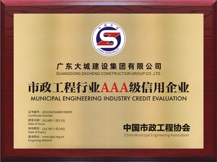 我司首次榮獲“中國市政工程行業(yè)AAA級信用企業(yè)”稱號